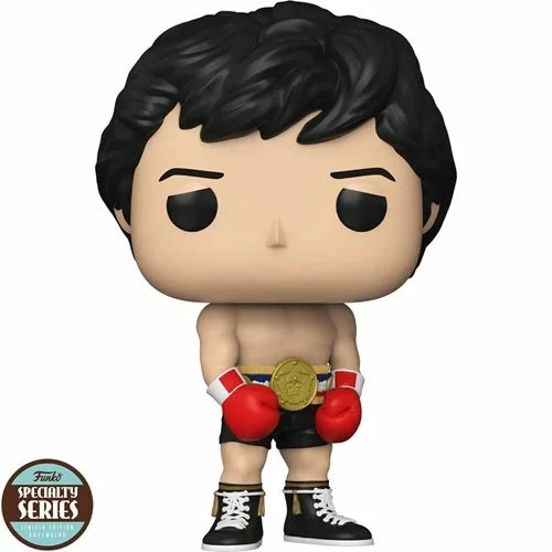 This Rocky 45th Anniversary Rocky with Gold Belt Pop! Vinyl Figure – Specialty Series measures approximately 3 3/4-inches tall. Comes packaged in a window display box.